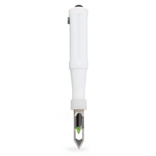 Paslanmaz Çelik Bıçaklı Konik Uç Konik biçimli uç tasarımı, et ve et ürünlerine doğrudan nüfuz etmeyi sağlar. Paslanmaz çelik bıçak, cam ampulü korurken et ve diğer yarı katıları kolayca delmek için keskindir. |