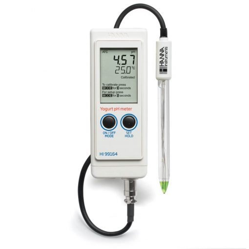 HI99164, yoğurt analizi için özel olarak tasarlanmış dayanıklı, su geçirmez ve taşınabilir bir Foodcare pH ve sıcaklık ölçerdir.